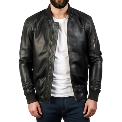 Blaze Ma-1 Blue Leather Bomber Jacket